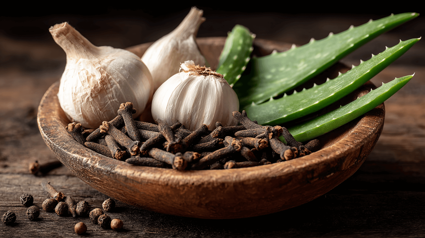 The combination of aloe vera, cloves, and garlic is a powerful natural remedy used in traditional medicine for centuries. Each of these ingredients carries specific compounds that support intestinal health, digestion, and immune function. Together, they work synergistically to cleanse, soothe, and protect the gut.