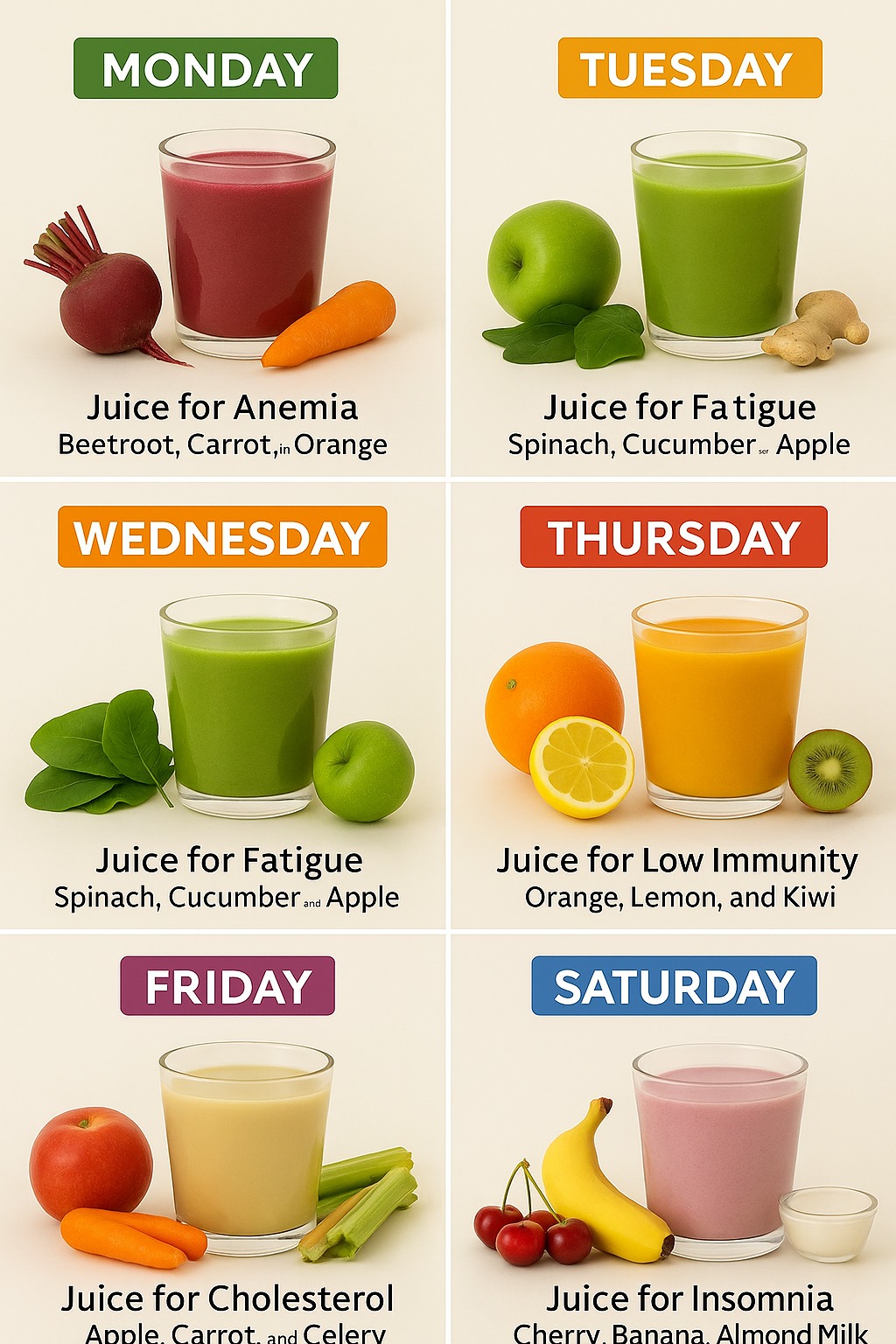 Colorful smoothies are a fun, delicious, and nourishing way to support your body throughout the week. Just remember: variety, balance, and moderation are key to making the most of this healthy habit.