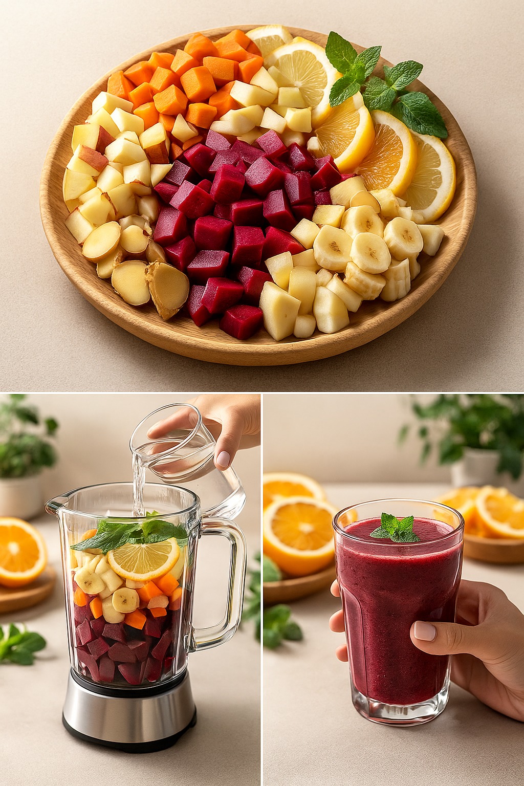 ✔️ Supports liver detox (beet + lemon/orange)