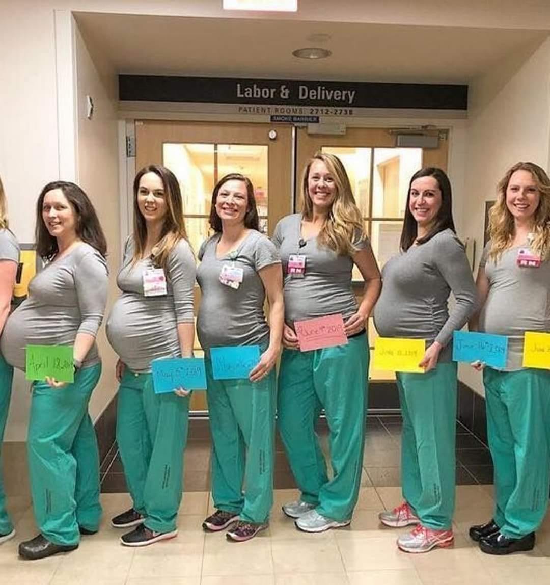 In the United States, at a hospital in Portland, nine nurses became pregnant at the same time and gave birth between April and May. An incredible experience that they shared with their colleagues.