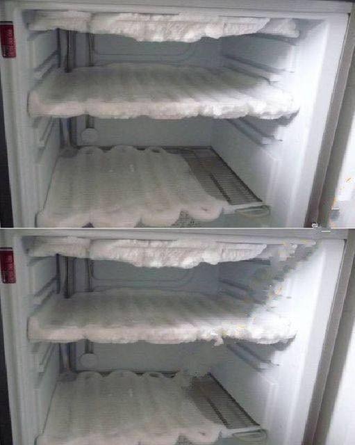 Instead, use a wooden or plastic spatula. Also, don’t forget to put a mop at the bottom of the freezer to mop up any water that will spill.