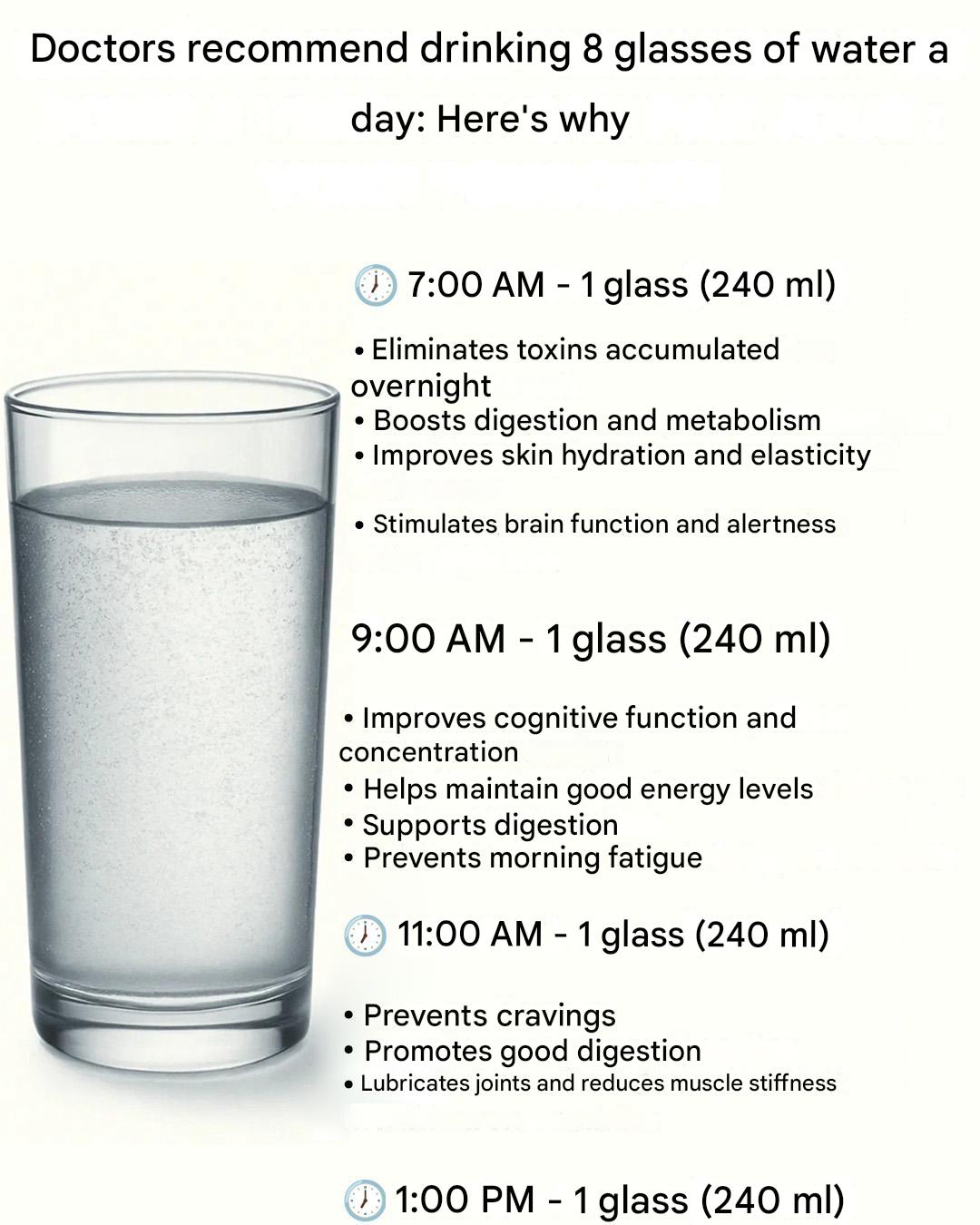 You've probably heard that you should drink eight glasses of water a day; that's what health insurance companies and doctors recommend. In reality, this number is just a guideline . Depending on your age, activity level, the weather, or even your diet, your needs will vary. The key? Listen to your body , but also anticipate its needs before you even feel thirsty .